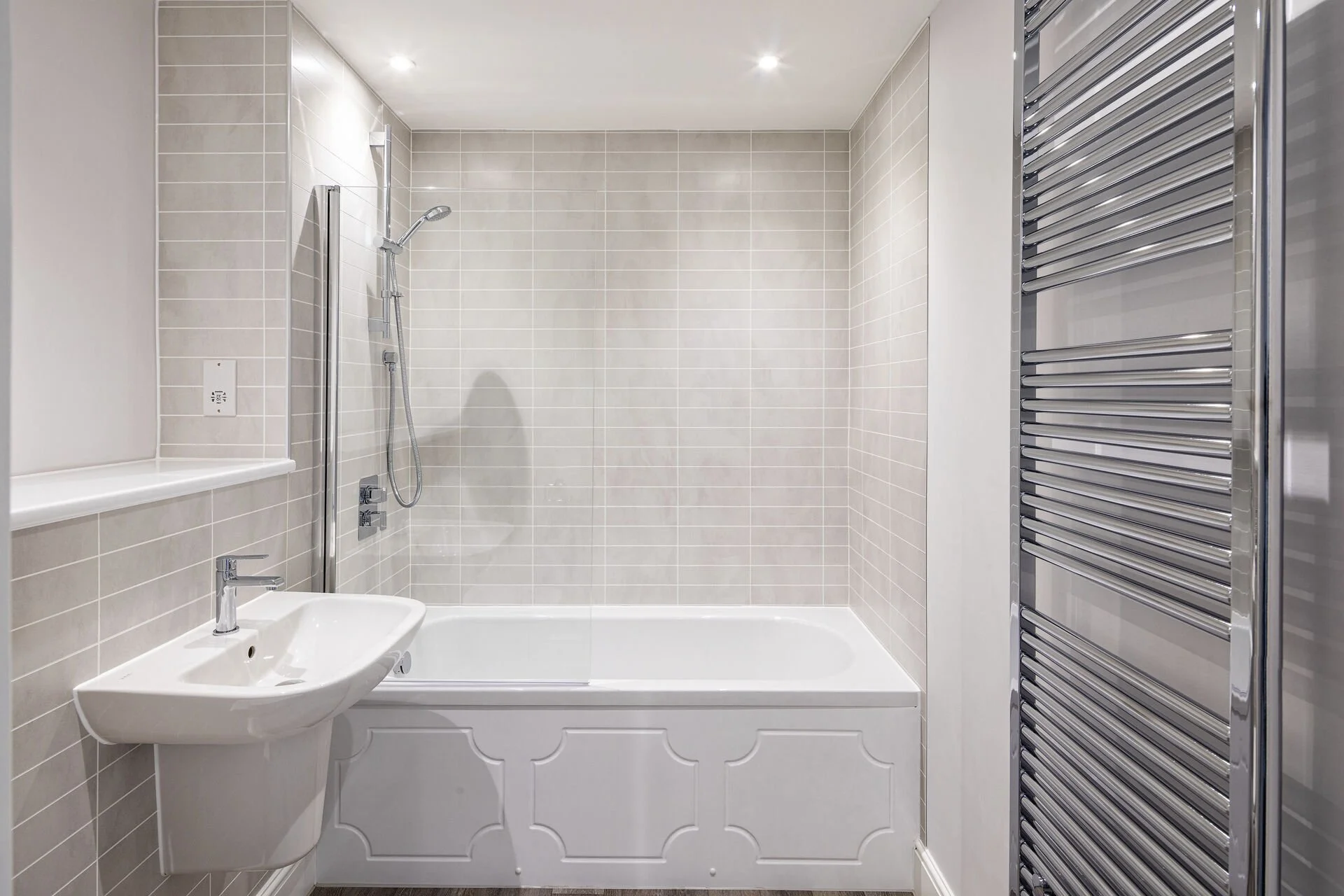 MIC installed Altro splashbacks in the kitchens and Altro Tegulis in the bathrooms. Mike Heffernan, Installer at MI Contracts said, “This is the first time we have worked with Altro Tegulis and it was a joy to work with. Tiling can be an untidy and a long-winded job. The installation of Altro Tegulis removed the mess and shortened the timescale dramatically”.
